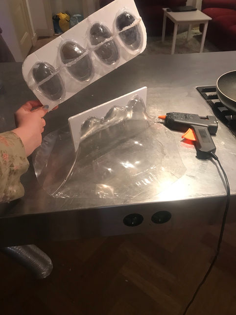 Secondly, my focus was on experimenting with different materials and the challenge of creating organic closed transparent shapes. My choice was a vacuum machine, ceramics bases, and a hot knife. You can see it in photos and a video of the process.